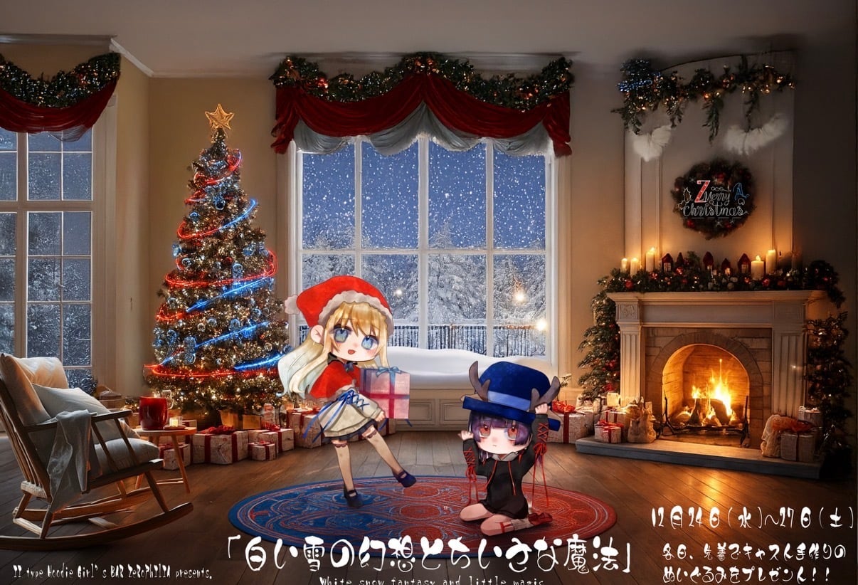 キャラクターデザインは灰猫、トータルデザインはオーナーが担当しております。実際の製品は【文字なし】となっておりますのでご自宅に飾りやすいようになっております。B2サイズとなりますので、クリスマスから外れたお正月に黙々とジグソーパズルはいかがでしょうか??(額縁などはお客様でご用意をお願い致します)